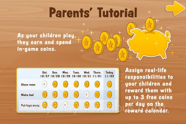 It aims to teach children smart saving and spending habits while engaging kids in creating a virtual world complete with roller coasters, dinosaurs and farm animals. But, also features a unique reward chart that can be customized by assigning a specific coin value to a list of real-world tasks.