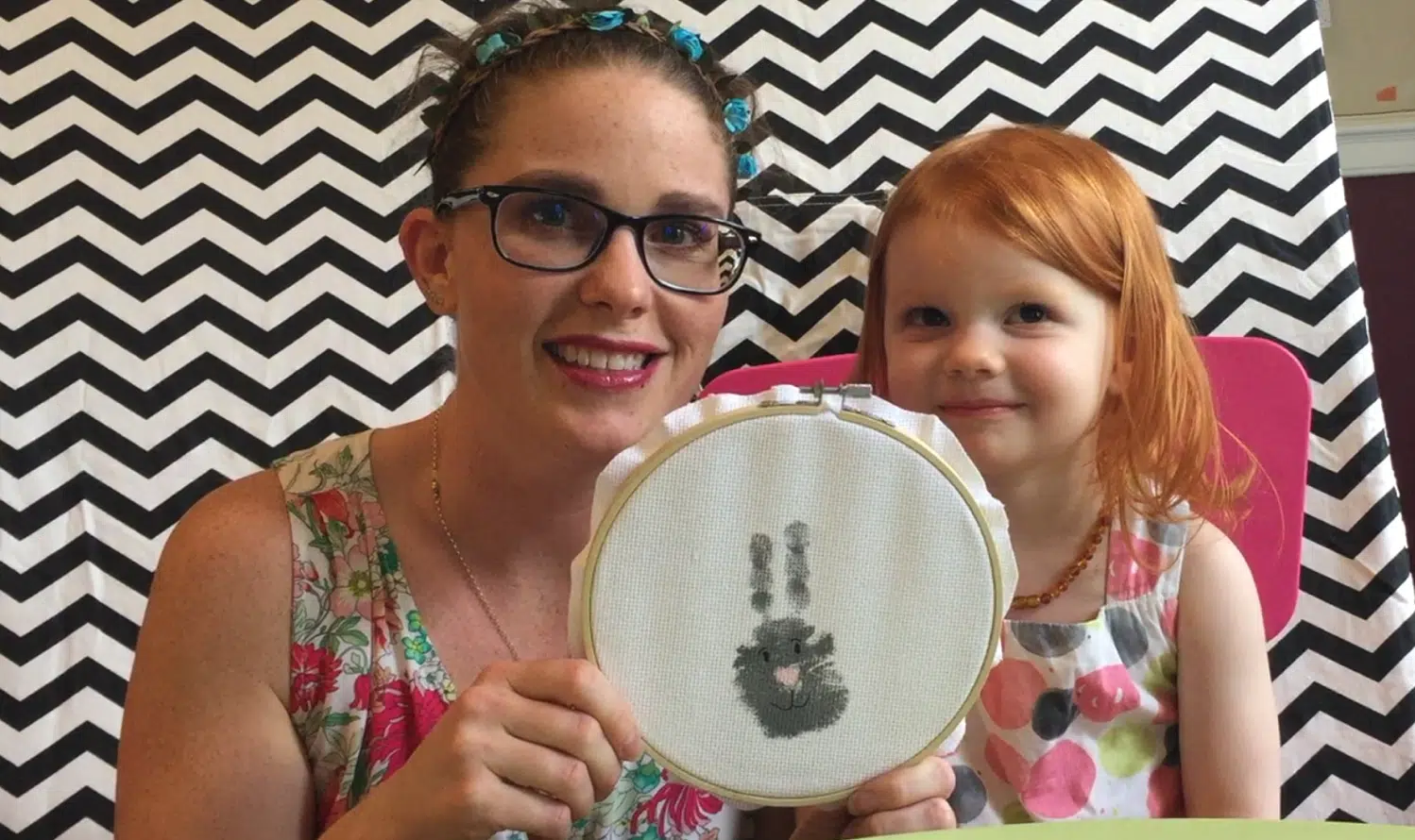 Her hand was them stamped onto the fabric. I made sure to press down her little hand and fingers to make sure they all made contact and then lifted her hand up straight and very carefully.