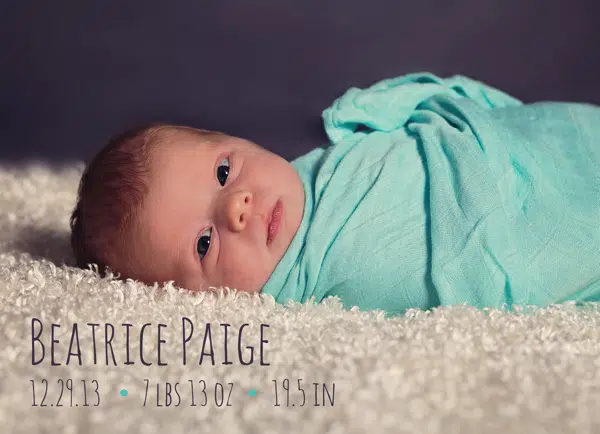 If there’s one thing I really enjoy doing, it’s making birth announcements…for my kids, for other people’s kids, it doesn’t matter. (After all, that is the business I’m in!) There is something about those new snuggly little babies.