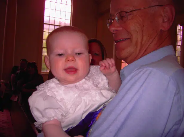 Our church is very busy with new babies, so it took a little while, but she was baptized this week. On April 15, 2007 (which coincidentally is the four year anniversary of our engagement), our little girl was baptized. She wore my cousin Taylor’s baptismal gown (which was very special for me. I’m so glad that my aunt agreed to let us use it) and used the baptismal shawl that I was baptized in and was made by my great-grandmother.