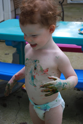 I LOVE finger painting and/or anything you can wash up with a hose!