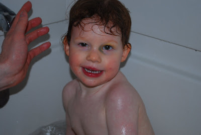 I love the picture at the end. Izzy is so sweet (and clean!) looking! I love how the towel is covering Nat’s eyes. Is she crying? You look beautiful too!